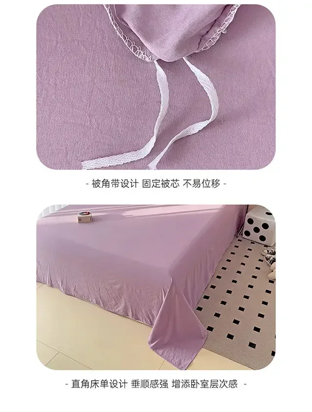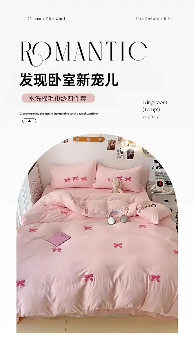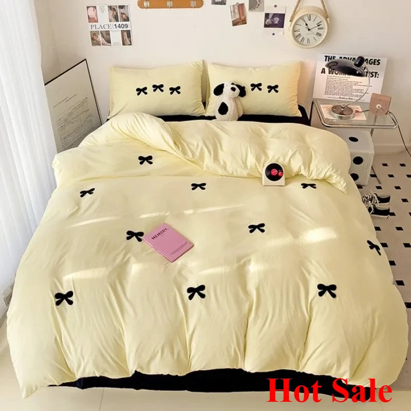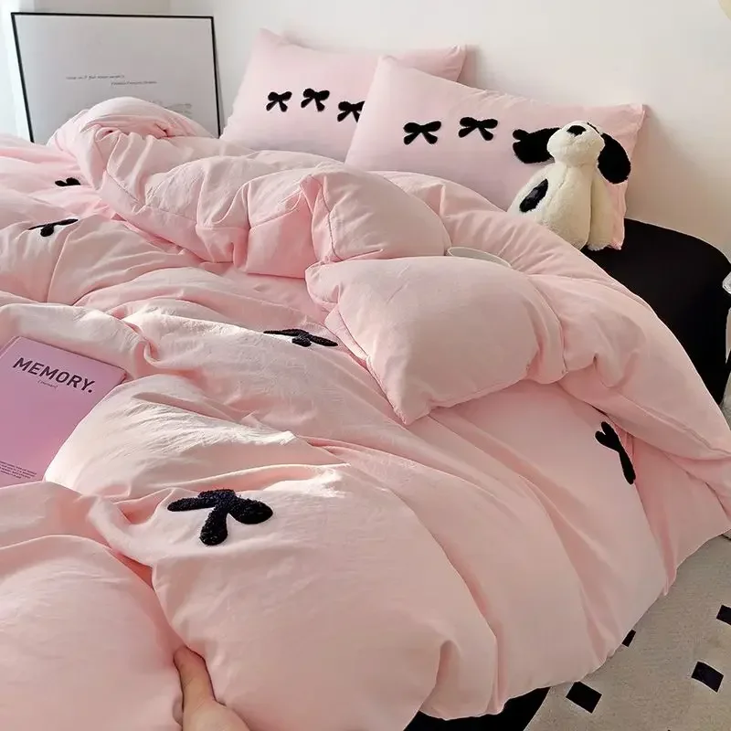 2025 Pink Bedding Set with Bow Korean Breathable Duvet Cover No Filler Flat Sheet Pillowcases Mix Color Comforter Cover Set