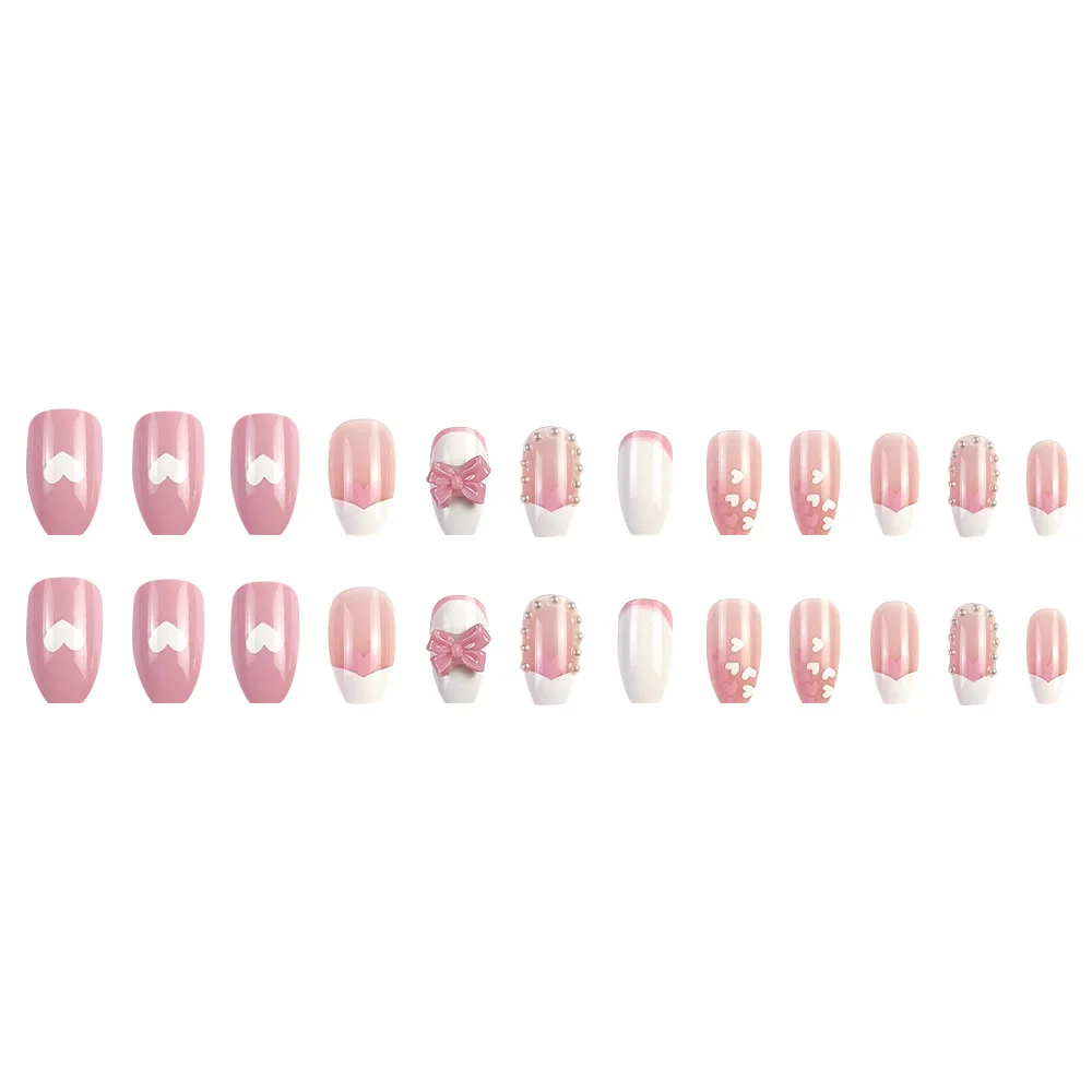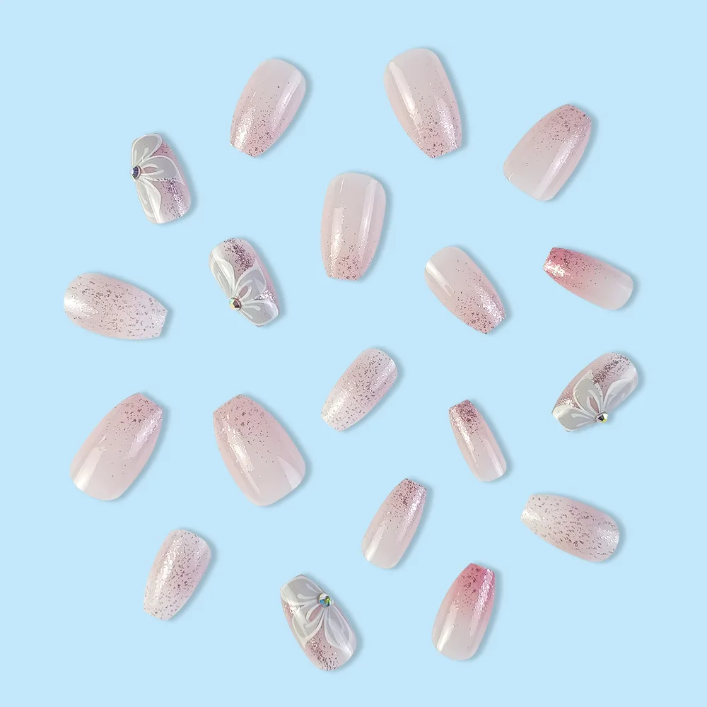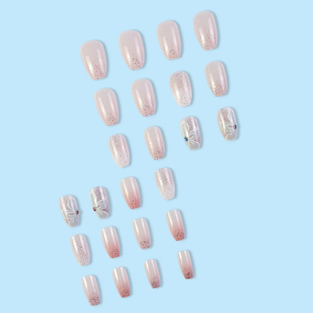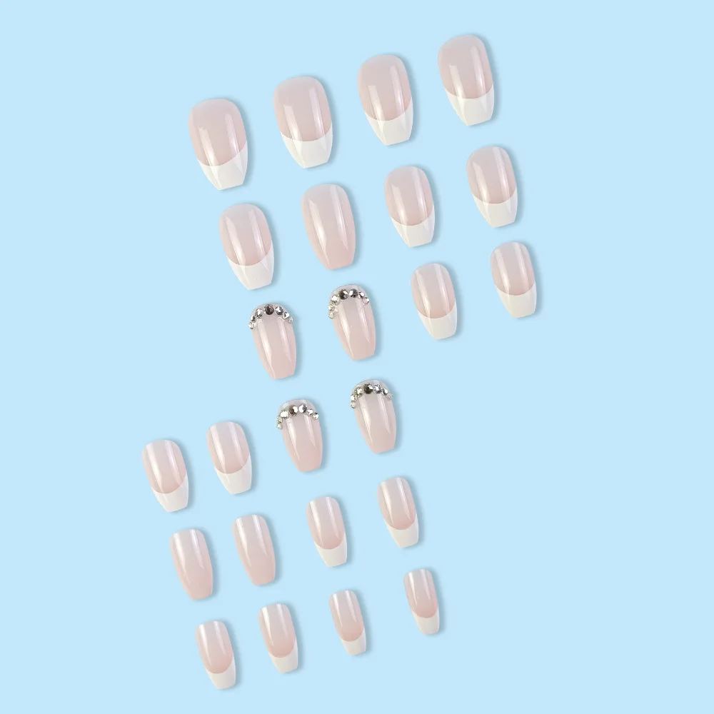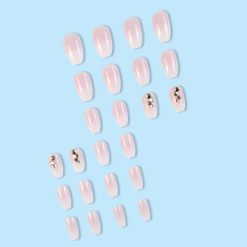 24Pcs Glossy Short Ballerina Press On Nails Pink Glitter Style False Nails With Rhinestone Shiny Artificial Reusable Fake Nails