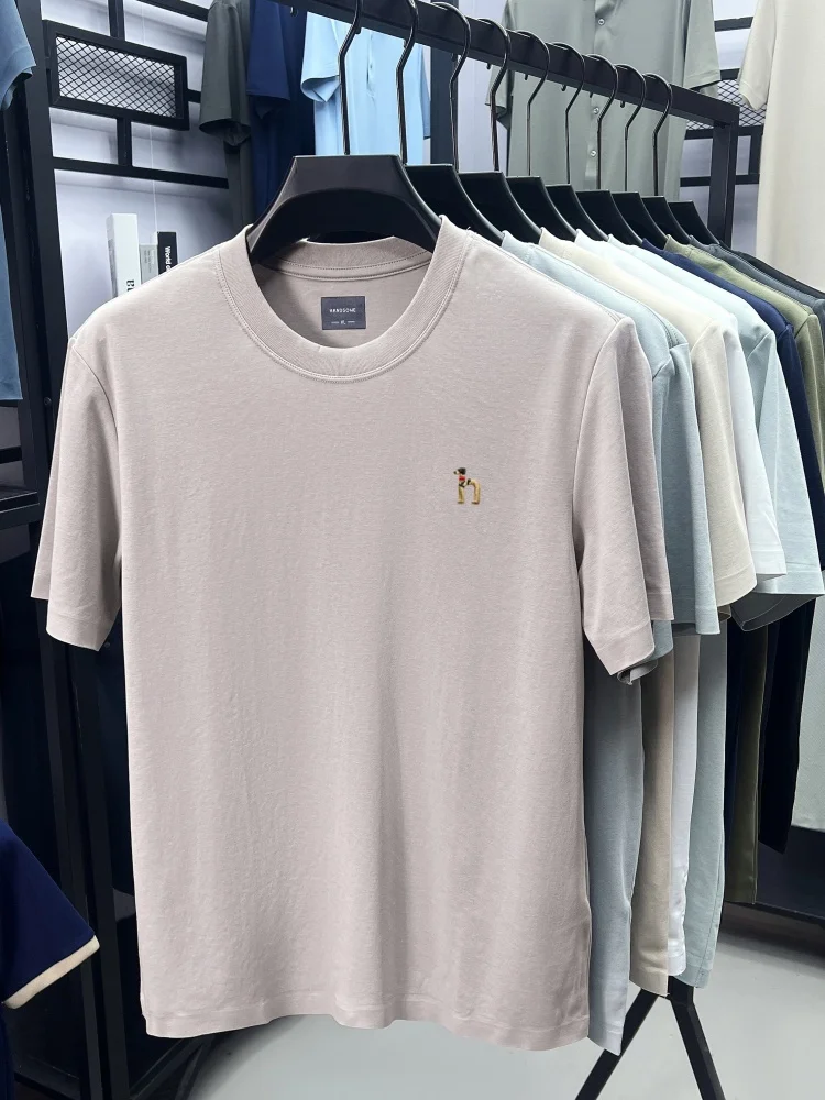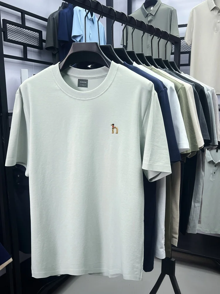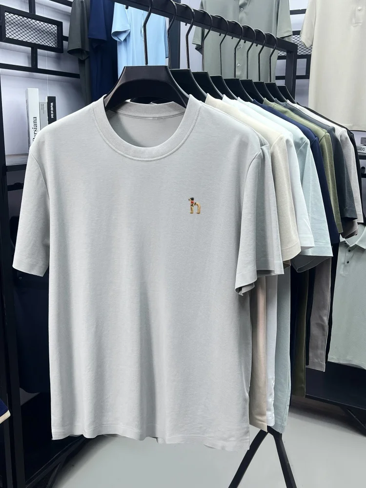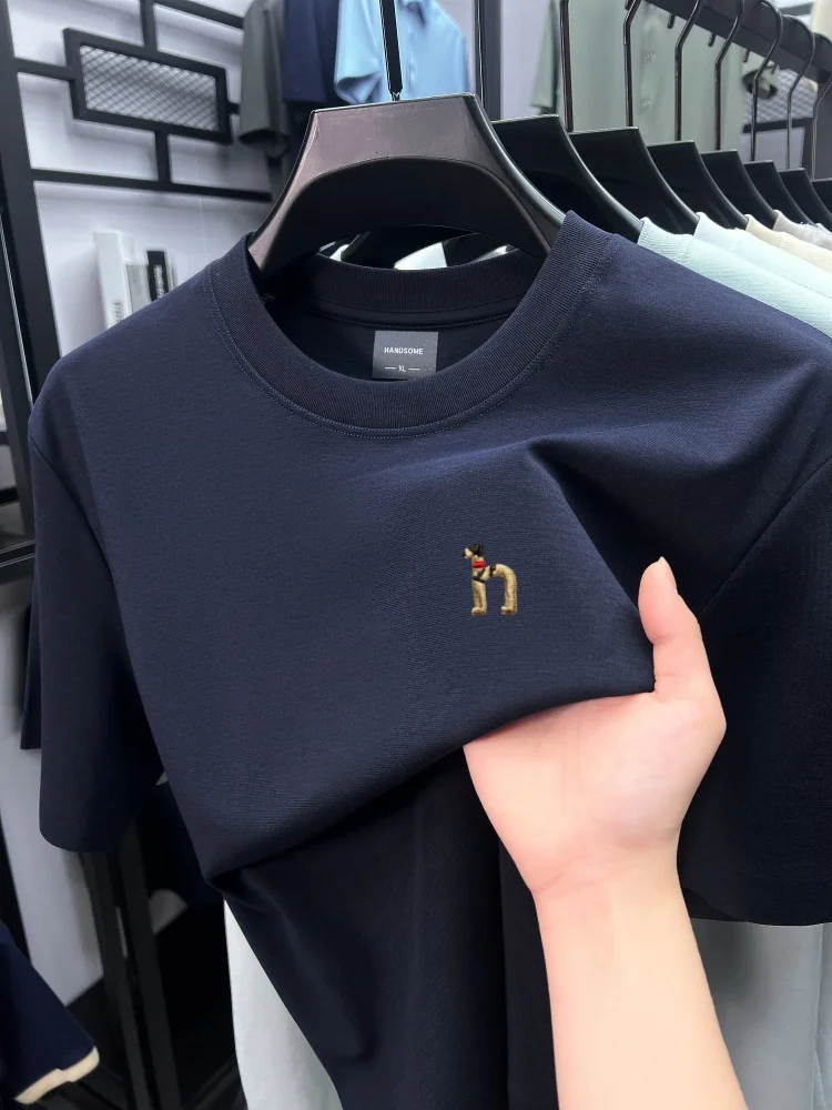 Luxury men's short sleeve T-shirt brand exquisite puppy embroidery summer ice silk cotton solid color breathable round neck top