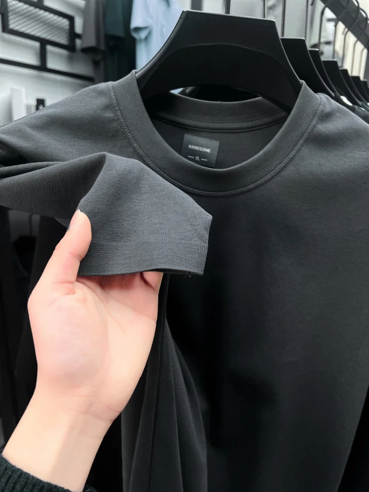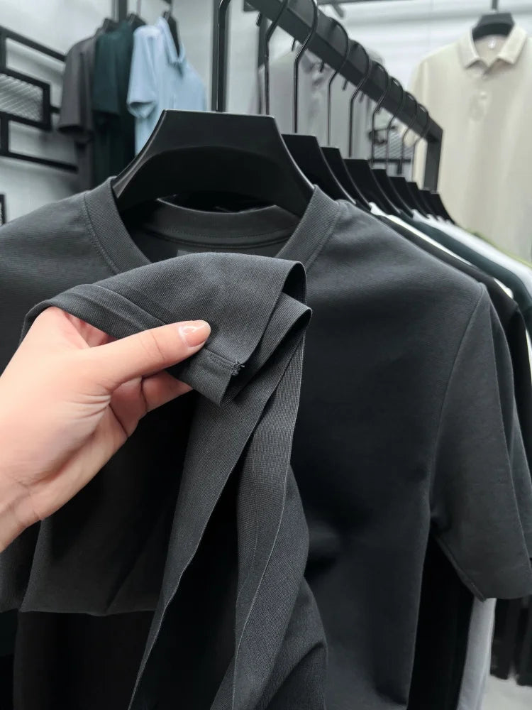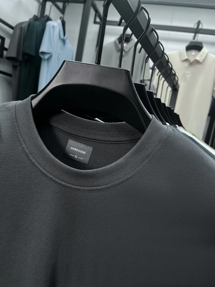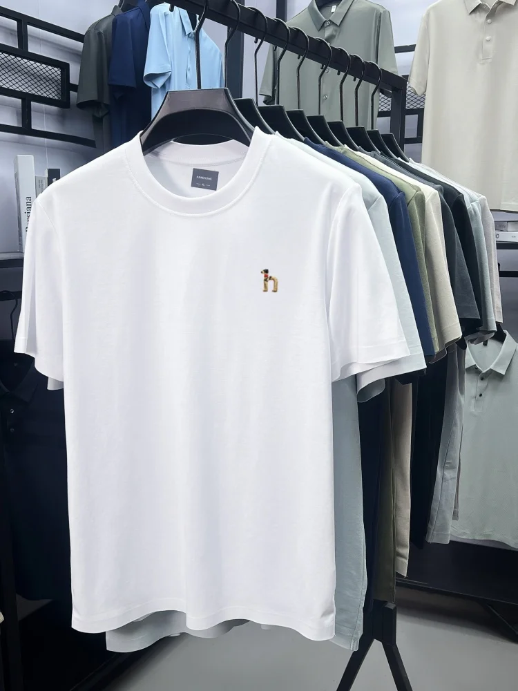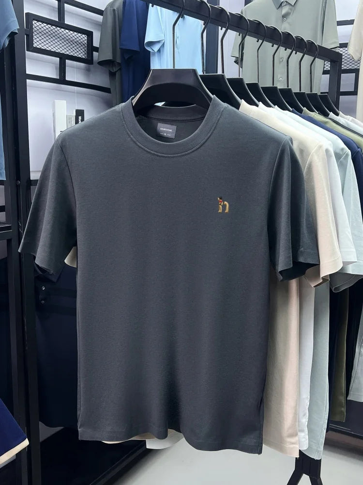Luxury men's short sleeve T-shirt brand exquisite puppy embroidery summer ice silk cotton solid color breathable round neck top